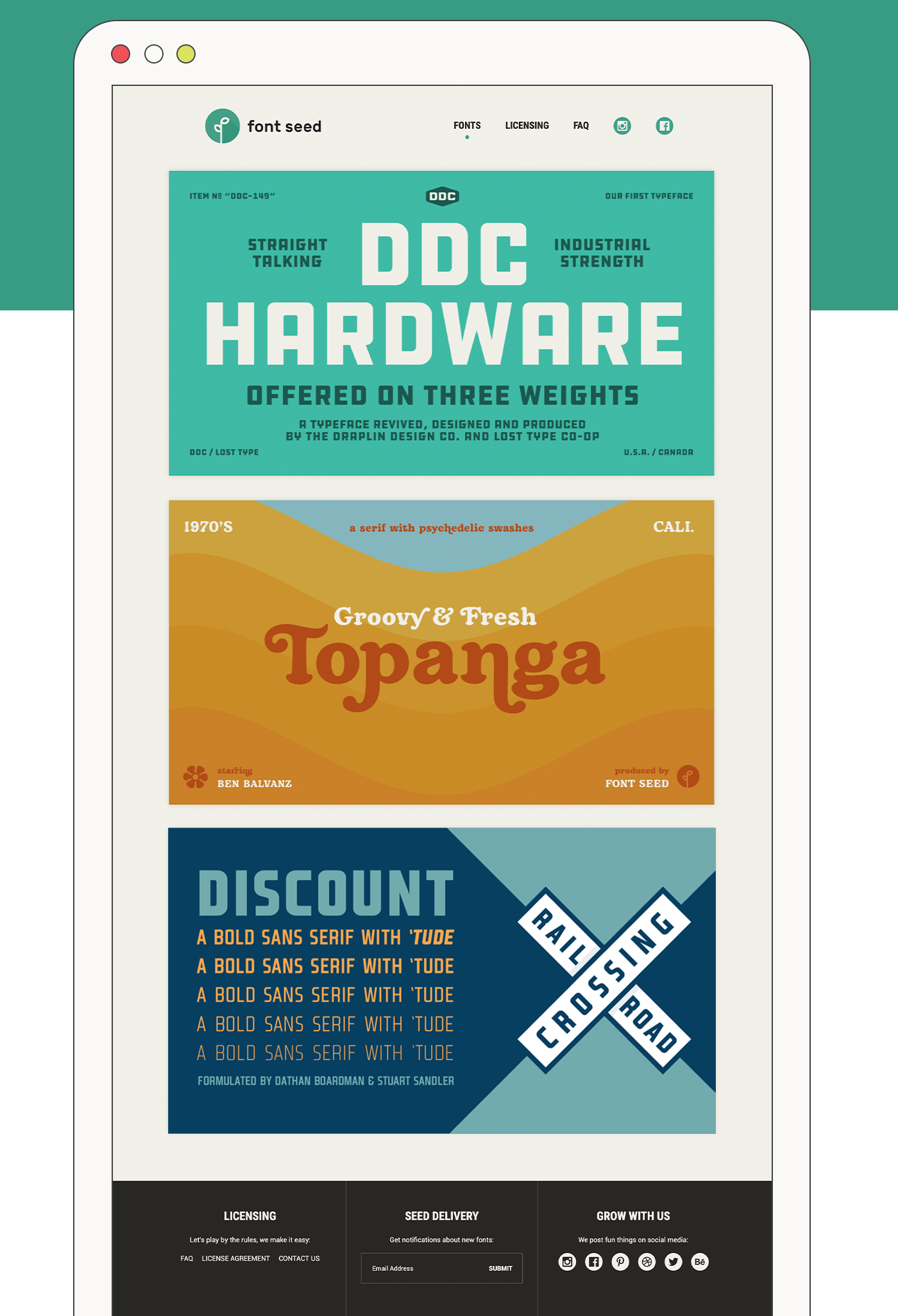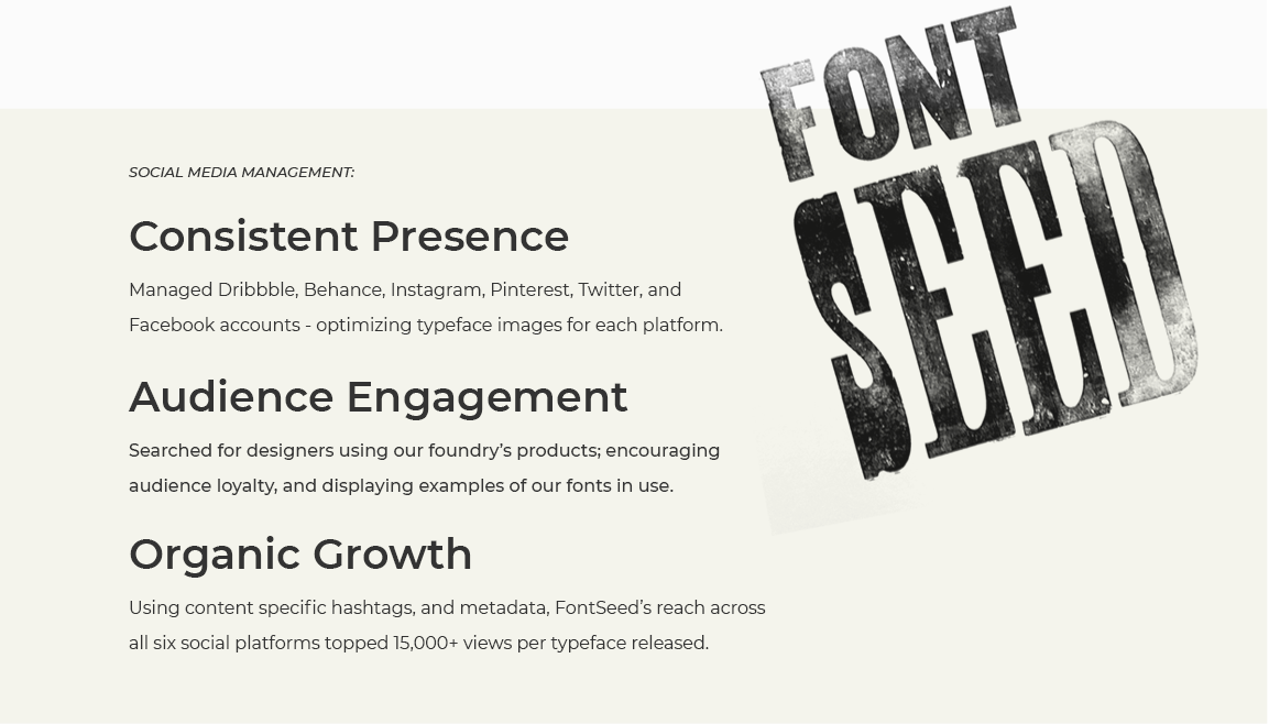 This custom website design made for Font Seed was repurposed and was used as the foundation for Aaron Draplin's font website: